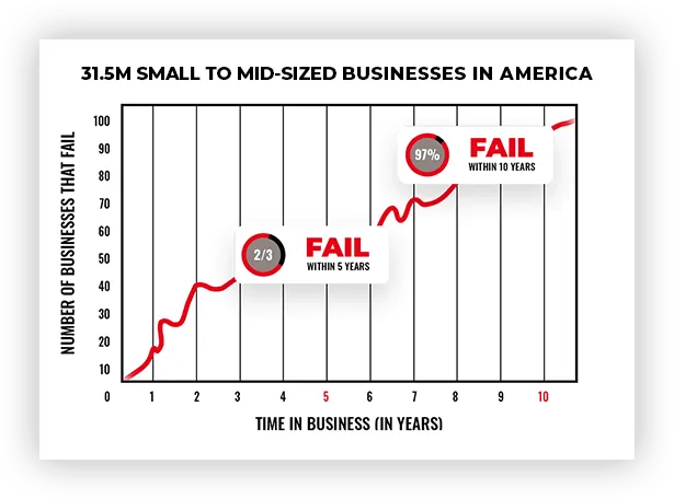 97% OF ALL BUSINESSES FAIL WITHIN 10 YEARS... WHY? The reality is that most business owners find themselves in a puzzling maze without a guiding hand. They lack the crucial knowledge of what to do, how to do it, and the precise order in which to take action.